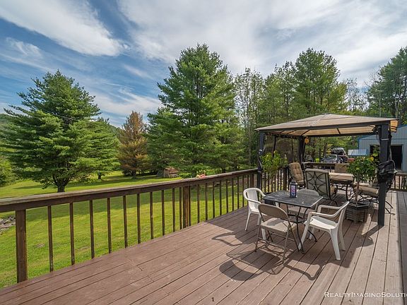 Imagine a beautiful view from a large deck onto a lawn with adjoining pastureland and the forest beyond. That's what this spacious 6 year old double wide offers! The kitchen is large and open to the living and dining areas. The flooring is a mixture of laminate and carpeting and is in great condition. The Master bedroom has a large bathroom with garden tub and separate shower. 3 more rooms can be bedrooms, an office or a workout room. The 40x60 garage with concrete floors and a 10' door is perfect for parking your cars or a great workshop. A car lift is available.
