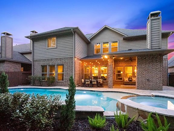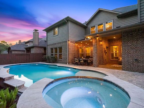 Location! Location! Location! Incredible opportunity for this beautiful home nestled within the highly desirable master planned community of Spring Trails. This Darling built home backs to a greenbelt, has a pool/spa and a 3 car garage! Upgrades galore: wood floors, covered back patio w/ fireplace, plantation shutters on front of home, built in wine refrigerator in kitchen, mature landscaping, upgraded lighting and chandeliers, sprinkler system, and a custom built in mud space by garage entrance door. Home features tall ceilings, open floor plan, gas log stone fireplace, massive walk in pantry, a study/office, game room, media room and 4 bedrooms! Home is walking distance to exemplary Broadway Elementary. Spring Trails has walking trails, fishing ponds, a community pool, several parks, basketball, tennis and pickle ball courts!