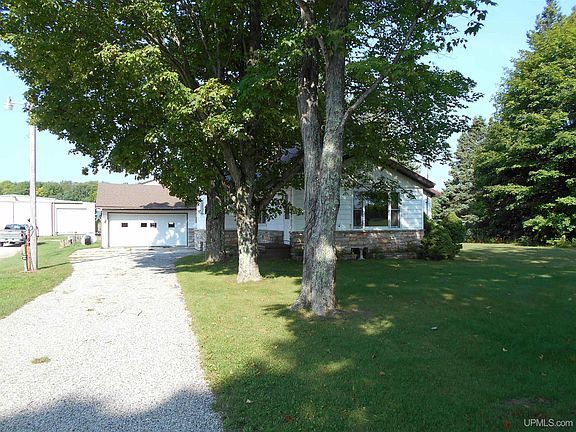 Possibilities are endless - best describes this 3 bedroom, 1 bath rural home. Located 5 miles from Manistique on 9.5 acres, the home is bordered by huge maple shade trees in the front and sides. Paved driveway with attached 2 car garage and attached 30x40 pole building provide ample storage space for your vehicles and recreational toys. In addition, there is a 30x74 detached storage building and workshop with 16' enclosed leanto on the rear and on side. With the open 6 acre field behind the building, its the perfect spot to start a hobby farm and keep everything covered and out of the weather. To the rear of the field is a 1-2 acre hardwood ridge that adjoins miles of Paper Company land. A perfect set up for a food plot to hunt or watch wildlife. Miles of country roads and trails to explore whether by vehicle, ATV or snowmobile. Close to the Manistique River and the Lake Superior State Forest. If you are looking for a peaceful setting with plenty of outbuildings for storage and wildlife out the back door, look no further! Priced well below replacement value with immediate possession.