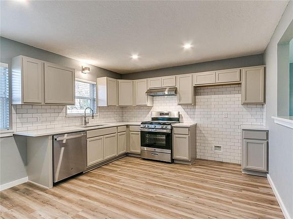 Beautifully renovated home in Southwest Norman. Three bedroom brick home with large double car garage. New kitchen, counter tops, sink and appliances, new flooring throughout, bathrooms freshly updated. Painted inside and out, updated lighting fixtures and ceiling fans, new privacy fence around huge yard and back gate to Elementary School. New double insulated windows.