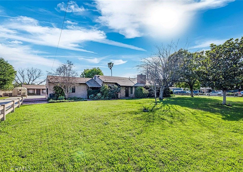Pleasant, ranch-style home with 4 bedrooms, 1.5 bathrooms, boasts 2,269 sq ft of living space on an enormous 27,000+ sq ft corner lot in the heart of Sherwood Forest. The home also includes a private, inground pool & detached 1 bed, 1 bath guesthouse with kitchenette. Set back from the street, the wide expanse of lawn frames the appealing stacked stone façade of the original home. Spacious living room boasts fireplace with oversized natural stone surround, beamed ceiling, and cozy alcove perfect as a home study or play area. Adjacent room boasts patterned tile floor, coffered ceiling, rustic wood wainscotting, and could be a fantastic dining room. Kitchen offers recessed lighting, wooden cabinets, tiled countertops, and a sunny breakfast nook overlooking the backyard with access to back patio. The home has 4 good-sized bedrooms with mirrored closets, two with private sliding glass door access to the yard. The main house also has a full bath and a powder room. A bonus room with vaulted ceiling could be a perfect family room, home office, personal gym, or art studio. A dedicated laundry room with utility sink & 2-car attached garage completes the main house. Out back is a gated courtyard area, pool, and adjacent guesthouse. Guesthouse, approximately 740 sq ft, opens to a sizable living room with coved ceiling, wooden accent wall, and decorative wainscotting, plus a separate driveway. Kitchenette has room for an informal eating area as well as stackable laundry. There is also a private bedroom with glass slider out to the yard and a full bathroom. Well situated near shopping, dining, entertainment, and recreation. The property offers abundant opportunities to update and customize to make it your own. Don’t miss this chance!