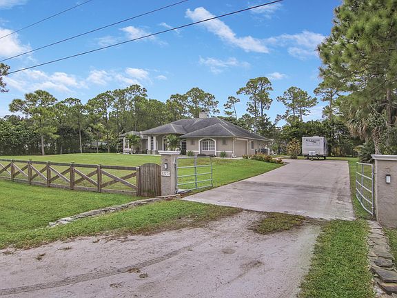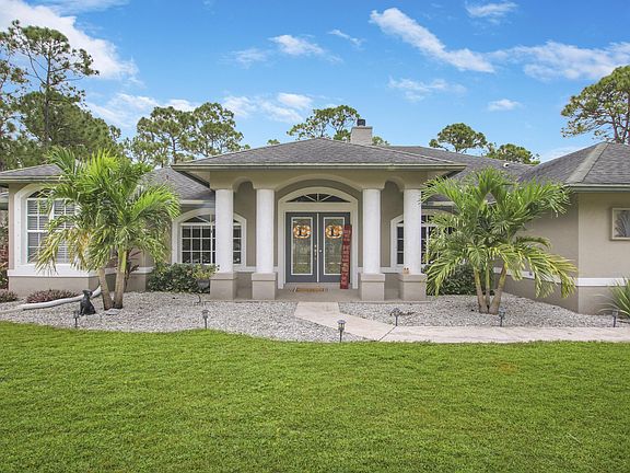 Welcome to Acreage living! Plenty of room for RV's, boats, ATV's and more. Home boasts 4 Bedrooms/Office with 2 baths. Bathrooms have been recently updated. Appliances, water heater, A/C are all 5 years old. Wood burning brick fire place set in the center of home. Enjoy mornings or evening on screened patio overlooking beautiful just remodeled pool. Landscaped yard is complete with Mango, Avocado, and Banana trees. Property is fully fenced with paved driveway. Don't miss out on calling this house your home!