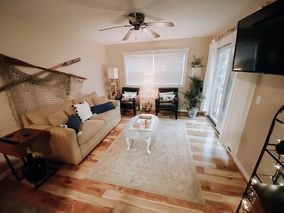 This two bedroom, 1 bath home, single family home is nestled in the beautiful historic Strawberry Pointe neighborhood. This is a short term seasonal rental. Fully furnished with a queen bed in one of the bedrooms, a trundle and two twin beds in the second bedroom, and a sleeper sofa in the living room. There is a sliding door to an elevated deck-perfect for enjoying your morning coffee while watching the sunrise, or a glass of wine while watching the sunset. There is central air for your comfort. There is spacious off-street parking for two vehicles on site. The beautiful back yard is enclosed with a picket fence. There is a deck, gas grill, comfortable patio furniture, and a fire pit, The lawn is beautifully landscaped and private. The neighborhood gives off a total vacation vibe! Just a short walk to the bicycle path that extends to Grand Haven. Take a short drive to scenic hikes and the Grand Haven sandy beaches of Lake Michigan. Cruise through Spring Lake market square and enjoy award winning restaurants, rooftop and tiki bars. Renter is responsible for gas, electric, internet, trash pick-up, and pro-rated water bill. Renter is also responsible for lawn maintenance, including leaf pick-up, and snow removable. There is no smoking or vaping allowed on the premises. No pets are allowed. Ample, free parking is on site. The lease term is somewhat flexible during the off-season September 2025-May 2026