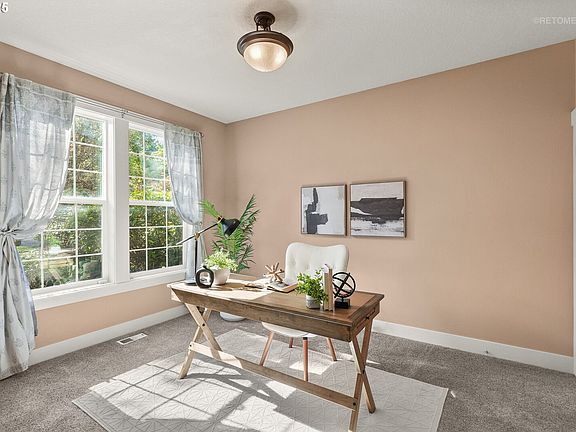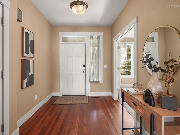 Beautifully designed and ideally located, this Sherwood home offers a functional and versatile floor plan with room for everyone. Featuring 4 bedrooms upstairs, plus a large bonus (or 5th bedroom), an open loft, and a main-level office or guest bedroom, the layout provides exceptional flexibility. The kitchen shines with cherry cabinetry, rich-toned hardwoods, slab granite countertops, stainless steel appliances, a walk-in pantry, and a large island that flows into the dining and great room with access to the paved outdoor living area... perfect for easy maintenance and year-round enjoyment. Upstairs, an open bonus loft leads to additional rooms. The spacious primary suite features tray ceilings, dual vanity bath, soaking tub, and walk-in closet with built-ins. Just steps to Sherwood Middle School, wine bar, local salon, gym, parks, walking paths, and Old Town Sherwood, offering dining and local amenities for all ages, you’ll quickly see why you’ll love living here!