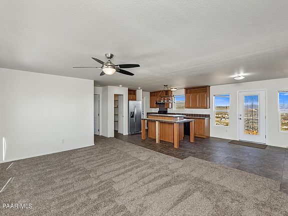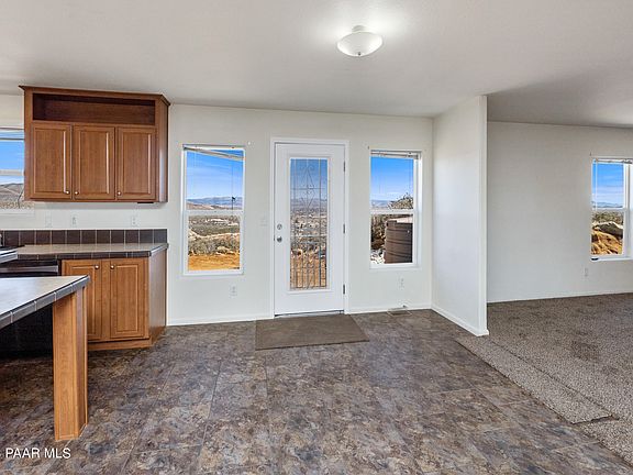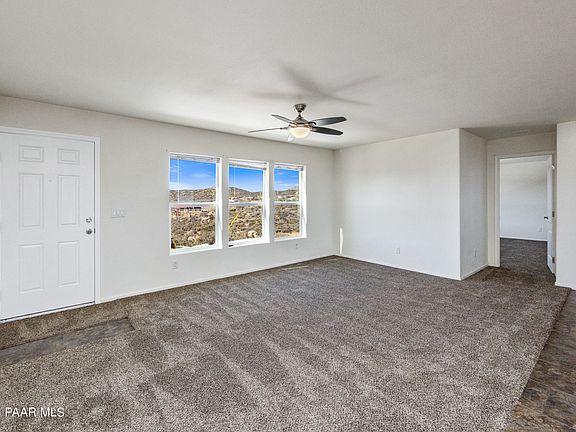 Best View home in White Horse Ranch, with 360 Degree Views!!! Nestled atop a private hill on over 6 Acres, this turnkey home is private and set back from neighbors. Built in 2015, this newer home features a new roof 2023, new paint, and new carpet, greatroom concept, huge master suite, large walk-in closet, huge pantry, split floorplan... The land features large boulder outcroppings and flat areas to add garages/workshops/horse setups... Enjoy amazing 100 mile views with Sunrises over the Black Hills and Sunsets over the Bradshaw Mountains!!!