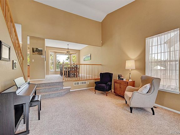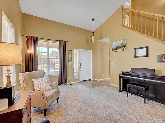 Welcome to the spacious and beautiful neighborhood of Challenger Park! This home is only 1/2 mile from the Cherry Creek Trail and Parker's extensive bike trail network. It is also walking distance to the dog park and Westcreek disc golf course. This incredible 6 bedroom/4 bathroom home has been well maintained and sits on a beautifully landscaped 13,000 sq. ft. lot. The home has an open floor concept and includes a formal living room and dining room. The kitchen has a huge island with seating, granite countertops, and a breakfast nook. The primary bedroom with its ensuite primary bathroom is a true retreat. The primary bedroom includes a huge bonus space for a home office, sitting area, gym, or however you choose to use it. The other two bedrooms are upstairs and joined by a Jack and Jill bathroom. The basement boasts another family room area with 3 additional bedrooms and a bathroom. The home had the roof replaced in 2018, basement bathroom remodeled in 2020, exterior paint on the house in 2023, Bali cellular blinds installed throughout the house in 2021, LR dimmable track lighting, newer whirlpool dishwasher and built in microwave. The covered back deck and the backyard are ready for your outdoor enjoyment and include a fire pit area and a horseshoe court. The home is pet and smoke free and is wired for a security system with door, window, and motion sensors. This community is one of the best locations in Parker with easy access and proximity to E470, I25, Costco, Trader Joes, and so much more! You'll love the serenity of this peaceful community.