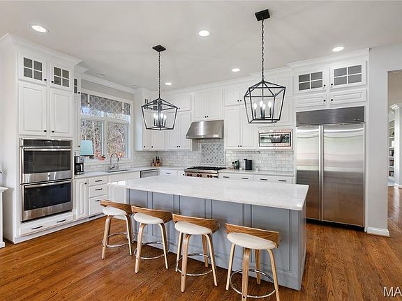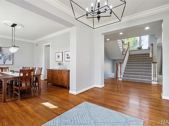 Located on a quiet street with mature trees and landscaped grounds, this home combines thoughtful updates with classic architectural details in one of Chesterfield's most established neighborhoods. This 4-bedroom, 4 full and 2 half bath home offers over 6,100 square feet of well-designed living space. The main level features hardwood floors, clean lines, and a balanced mix of formal and casual spaces, perfect for both everyday living and entertaining. The kitchen is equipped with high-end appliances, custom cabinetry, and a large center island with seating—seamlessly connected to a casual dining area and light-filled family room. A formal dining room and home office provide additional flexibility. Upstairs, the spacious primary suite includes a private sitting area and a well-appointed bath. Each secondary bedroom has its own en suite bath. A finished lower level adds even more functionality with space for a media room, fitness area, or playroom. Additional Rooms: Mud Room