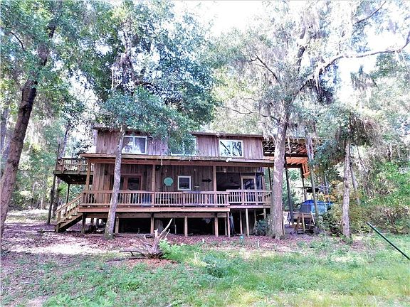 SPORTSMAN & NATURE ENTHUSIAST HEAVEN! Make this private location your weekend retreat or permanent residence located on the Ocklawaha River close to Rodman reservoir w/St. Johns River access.. Custom home on 7.5 acres features 2BR/2BA home w/board & batten style Cypress wood siding features 1414 sfla, wrap-around porch w/panoramic views of the river & Florida Greenway, downstairs LR w/wood floors & water views, eat-in kitchen w/pantry closet, & fully remodeled bathroom, upstairs BR w/walk-in closet, private balcony, & BA w/custom tiled shower, attached bunk room fits 5 full beds & closet, screened room w/living & laundry area, antique fixtures/doors/lights, new laminate floors.. Attached pole barn w/2 soaring bays for vehicles, boats & RVs.. RV campground close by for visiting family.. All of this on private & gated 7.5 acres w/3 separate eco-systems for the nature enthusiast boasting lots of wildlife.. Ocklawaha River is the best for bass fishing.. 14 miles of usable river to the west & 9 miles to the east toward Rodman Reservoir.. Walking trails through Greenway.. New water heater, downstairs flooring & remodeled guest bathroom.. ONE OF A KIND PROPERTY!