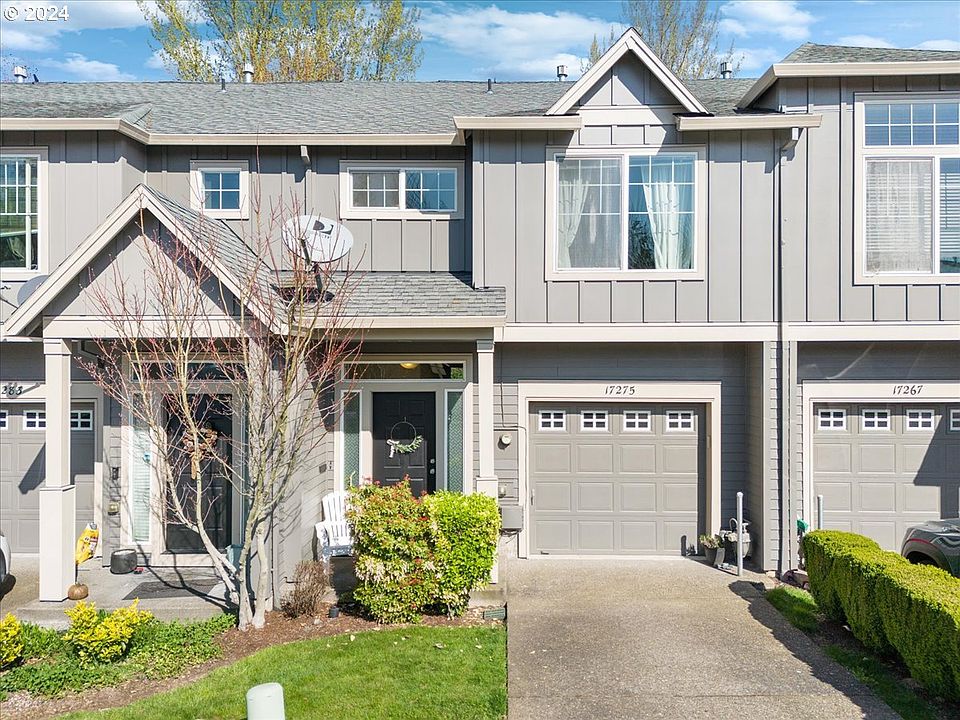This move-in ready townhome backs to green space and is located in the desirable Arbor Reserve community in the Bethany area. Enjoy the great room with laminate flooring and a cozy fireplace. The kitchen has granite counters, a gas range, an island with an eating bar, and a pantry. The dining area has a slider to the back porch that is perfect for entertaining. The primary suite has a vaulted ceiling, a walk-in closet, and a full bathroom. Upstairs, there are two more generously sized bedrooms, a full bathroom, and a nook that is perfect for office space. The laundry area comes with a washer and dryer included. Enjoy the fenced backyard with a patio that overlooks the wetlands. The home also features an attached garage with an opener, a gas furnace, air conditioning, and a new hot water heater. The home sits in a quiet cul-de-sac with extra street parking and is conveniently located near Intel, Nike, Columbia, shopping, parks, and other amenities. Easy freeway access. Excellent schools: Oak Hills Elementary, Five Oaks Middle, and Westview High School. Great value for the area!