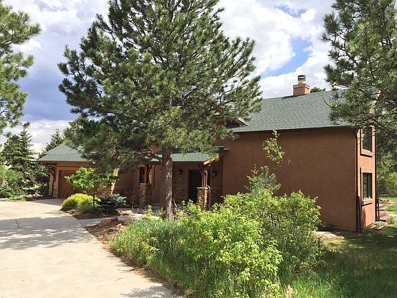 A true Colorado beauty situated on 2.51 acres in a very private setting with perennial gardens, raised vegetable beds and the most beautiful "She Shed" ever. The double door entry leads you into the tiled entryway that is open to the vaulted living room with a massive floor to ceiling rock fireplace that separates the living room and the formal dining room w/ a walk-out to the huge wood deck & the peaceful surroundings. The family room is open to a sunroom & a gourmet kitchen that features Silestone countertops, all appliances, pantry, huge counter bar and a breakfast nook that walks-out to an additional deck. Completing the main level is a laundry room with built-in shelves and a ½ bath with a granite countertop. The 2-car attached garage has a built-in workbench, shelves and cabinets. The upper level features a loft area with built-in bookcases that overlooks the living and dining rooms. Separate wings in the upper level feature a master retreat with an attached sunroom/office with