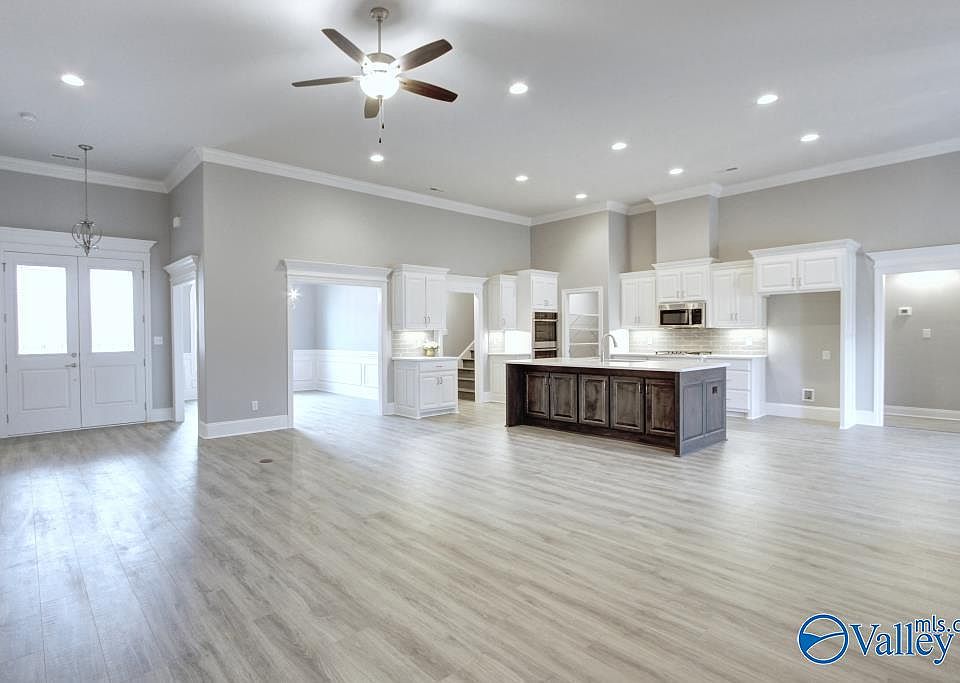 - Features: 12’ Ceiling, Crown Molding, Kitchen Island, Pantry, Quartz, Recessed Lighting, Smooth Ceiling, Wood Floor