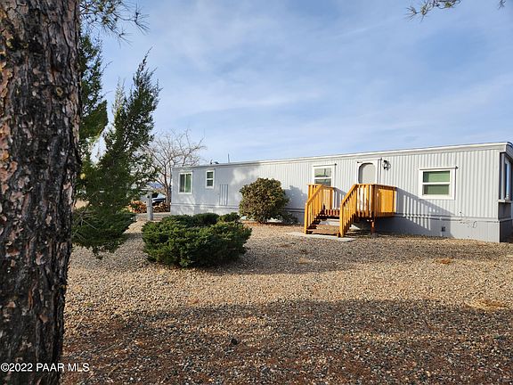 Looking for affordability for family living or ready to become a landlord. Maybe you need a home close to both Prescott and Phoenix area for your commute. This home will serve all those purposes. Perfect for starter home, great rental or easy commuter. Cute 2 bedroom has been redone with new flooring, paint, kitchen and brand new roof with new 30 year shingles. Adorable front porch to view your park like front yard and mountain views. Huge back patio for entertaining. Property backs to quiet community park. New 10 X 20 lofted shed for extra storage with electric, 10 X 12 shed with electric, plus two RV hookups. One full hookup and one hookup with water and electric. Next door is a site built home and a brand new home will be going on opposite lot to this one. Super clean and well maintai