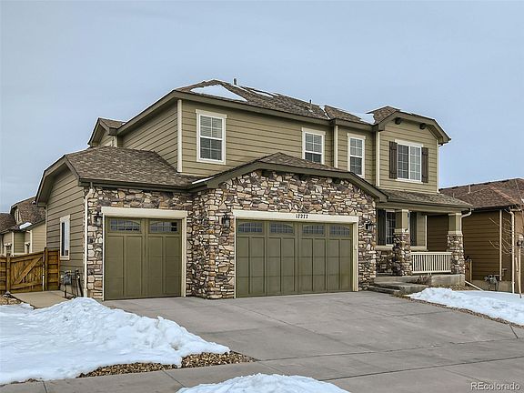 Welcome to your move-in ready home in Reunion! This beautiful two-story home with a finished basement is perfectly situated on a south-facing large lot, and conveniently located across from the elementary school. Every detail in this impeccable home is ooh + aah worthy...from the large entryway leading past the home office and half bath to the enormous open concept kitchen, living room, and dining room where you will make your favorite memories. The chef-worthy kitchen has upgraded soft-close cabinet drawers, stainless steel appliances, and an expansive island which adds valuable storage, counter and prep space. The main floor opens seamlessly to a cozy living room with a gas fireplace, and a sun-filled dining room adjacent to the backyard. You will enjoy professional landscaping with poured concrete walkways that wrap around the back of the house and connect to the covered outdoor patio with a gas hook up for your grill. Upstairs is complete with a primary 5-piece suite plus three bedrooms, two additional bathrooms, and a loft area. The basement is finished to provide a spacious and private guest bedroom and bathroom, movie nook with projector and screen included, and plenty of space to enjoy. This home also comes with a whole house fan and water softener, and has upgraded insulation to help keep noise down and heat/cooling distributed evenly throughout the home. With a 3-car attached garage, established landscaping, and literally every surface of the home move-in ready, you'll be free to enjoy the easy lifestyle of the surrounding community that includes golf, restaurants and coffee shops, shopping, miles of trails, numerous parks, community events, Bison Ridge Rec Center, plus an easy commute to Downtown and DIA. You are going to LOVE living here!