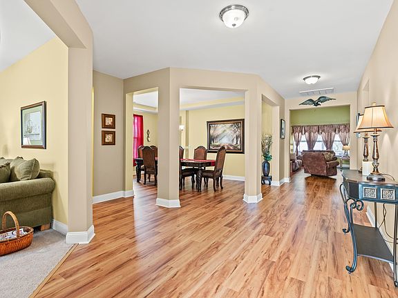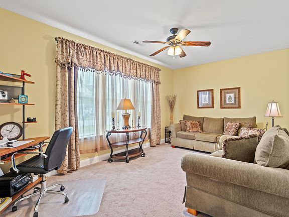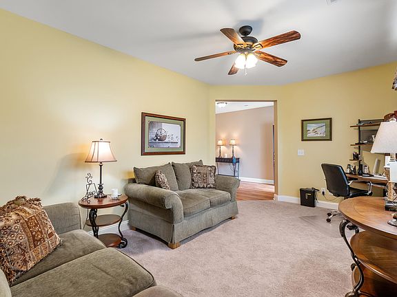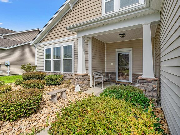 Discover the epitome of family-friendly living in this charming residence that seamlessly combines elegance and practicality. This home features three well-appointed bedrooms and 2.5 bathrooms on the main level, a spacious bonus room (a non-conforming bedroom, ask for details), and a bathroom on the second level. This home caters to comfort and privacy for all members of the household. Entertain guests in the formal dining room or enjoy casual meals in the breakfast area, with both spaces conveniently connected to a superbly equipped kitchen featuring granite countertops, a new French Door fridge, stainless appliances, a double-door pantry, and a built-in wine rack. (some pictures are virtually painted and window treatments removed to show how it would look painted a new color). Embrace the versatility of the flex room, ideal as a playroom, home office, or additional living space. The great room features vaulted ceilings and a ceiling fan, and is an inviting room for relaxation and social gatherings, flowing effortlessly into the kitchen. The owner's suite is a serene retreat with a bay window and an ensuite bathroom with a garden tub, linen closet, and a spacious closet. ALL DRAPES, CURTAINS, AND CURTAIN RODS DO NOT CONVEY. ONLY THE BLINDS. Experience the serenity of outdoor living on the covered front porch or the screened rear porch, offering views of a lush backyard ready for a pool, and tranquil pond vistas beyond. Additional amenities in Cameron Village include an outdoor pool, pickleball and tennis courts, and close to beautiful beaches and shopping, making this a perfect haven for your family's next chapter. The public boat launch is just a short drive from this lovely home! Schedule your showing today!