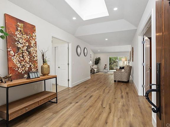 Indulge in the epitome of coastal living at this breathtaking Carlsbad haven, where your dream home awaits just a leisurely stroll from the tranquil shoreline. This single-story gem, sprawling across approximately 2,200 square feet, graces an expansive lot of nearly half an acre (.41 acre), offering an idyllic blend of space and sophistication. Positioned in a coveted locale, this residence provides seamless access to upscale shopping centers, top-tier schools, a public library, and an array of delectable dining options. As you step into this coastal paradise, the refined allure of recent renovations envelops you, with luxurious Luxury Vinyl Plank (LVP) flooring gracefully guiding you through the home. The heartbeat of the house is the gourmet kitchen, a culinary masterpiece featuring granite countertops, a travertine backsplash, and top-of-the-line appliances—including an Amador stove with an upgraded pot filler faucet, designed to delight Italian cooking enthusiasts. A super exhaust fan ensures a culinary experience like no other. Designed with intention, this home features three bedrooms, including a master suite with a meticulously renovated master bath boasting all modern amenities. Upgraded cabinetry seamlessly integrates, providing ample storage space. The third large bedroom, cleverly crafted by combining two bedrooms into one, serves as a private haven for both work and relaxation. The entire abode is equipped with a state-of-the-art Quiet Cool fan system, guaranteeing a cool and comfortable living environment. Embracing energy efficiency, the property boasts owned solar panels meticulously maintained by Tesla. Impeccable window treatments, adorned with remote control drapes, enhance several doors and windows, while the master bedroom and bath showcase outdoor window and door treatments for added convenience. Step outside to unveil your private oasis, featuring a renovated inground pool and spa, a patio cover and built-in a gas stove, burner, and sink, awnings, an outdoor shower, and a captivating garden and beautiful orchard fruit trees. This outdoor entertainment space is perfect for hosting gatherings with friends and family. This fantastic property on the cul-de-sac boasts the rare luxury of No Homeowners Association (HOA) and No Mello Roos, offering you unparalleled flexibility and autonomy. Enjoy the expansive grounds with ample room for RV or boat parking on the side, as well as the potential for a future Accessory Dwelling Unit (ADU). Unlike the restrictive Aviara community, this residence shares the coveted 92011 zip code but grants you the freedom to live without the confines of strict rules and regulations. Situated just a mile away from pristine Carlsbad Beach and its inviting bike trails, this home is a haven for outdoor enthusiasts. A nearby park provides additional recreational opportunities, while the renowned "La Costa" Omni resort is less than half a mile away, offering world-class amenities and entertainment at your fingertips. Golf enthusiasts will appreciate the proximity to both the Aviara Golf Course and the La Costa Golf Course, ensuring that every day can be a day on the green. Embrace a lifestyle of convenience, relaxation, and boundless possibilities in this well-positioned residence. Welcome home to a life where the beach, parks, and premier golf courses are just moments away, and the only rules you need to follow are the ones you set for yourself. With an extraordinary investment exceeding $500,000 by the sellers, every detail of this home has been meticulously considered. Seize the opportunity to experience the unparalleled luxury and comfort this property has to offer—schedule a viewing today and prepare to be captivated by this Carlsbad masterpiece! ( Contact listing agent for the list of improvement.)