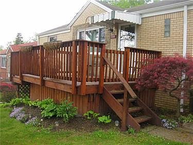 This charming all brick home has so many outstanding features including; refinished hardwood floors, newer carpeting, granite counter tops, equipped kitchen, two updated bathrooms, large family room, large deck, newer gutters/downspouts, beautifully landscaped fenced yard and one car garage! Close to shopping. Minutes to downtown Pittsburgh.