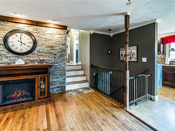 Meticulously updated split level situated on over 18 acres in Mexico Schools! Seller has spared no expense here. Stepping in to this home you will be greeted by an over-sized dining room featuring a stone wall, hardwood floors and a built in hutch with matching stone backsplash. The kitchen has been completed updated and features an eat-in space for extra entertaining with french doors leading out to your peaceful backyard. Upstairs you will find an incredibly updated full bath, hardwood flooring and 3 large bedrooms. The basement has been finished and features an office which could be used as a 4th bedroom, a 1/2 bath with laundry and a built in safe that will stay with the home. Outside you have plenty of space to roam on your 18 acres!! Don't wait! Call today!