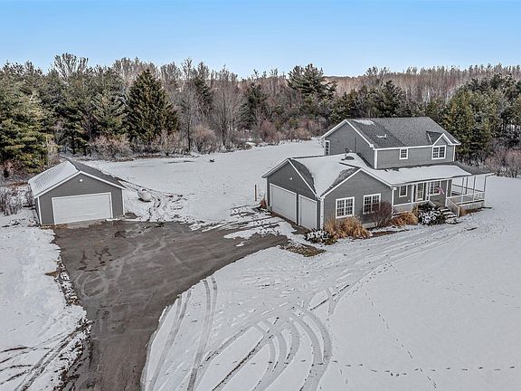 Spacious 3 bedroom, 2 1/2 bath home nicely situated on 10 acres! Wonderful floorplan with lots of natural light, living room w/fireplace, beautiful kitchen, office/den, master bedroom suite and much more! There are lots of outdoor spaces to enjoy with the charming wrap-around front porch, large screened-in back porch and deck. There is also an attached 2-car garage and second garage for all of your storage needs. Don't miss out - call for an appointment today!