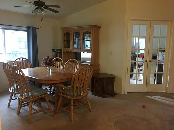 Spacious 3 bedroom, 2 bath home with fenced yard in a treed neighborhood. Brand new metal roof in 2019. Spacious master suite with soaker tub. Living/dining with vaulted ceilings with french doors to office. Dorchester Park - leased lot.