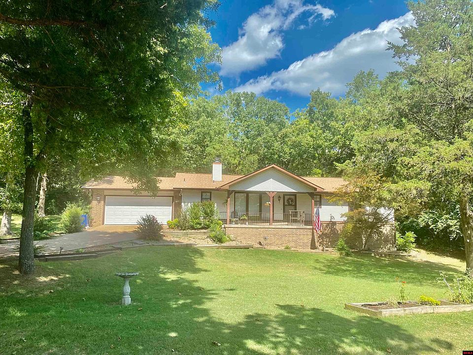 Wonderful setting for this golf course neighborhood home. Spacious great room design, vaulted ceiling & cozy fireplace, kitchen with breakfast bar, glass enclosed porch. Property backs to wooded area. Just minutes to golf, lake and shopping.