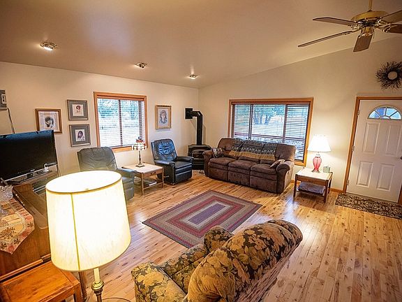 New roof 04/2020 on this Country home with creek access & scenic views! Sitting on 4.22 acres between Powell and Cody, this home features a beautiful covered deck, 3 bedroom, 2 bath, vaulted ceilings, wood floors, full walk-out basement, wood & gas burning stoves. Large storage room, & 3 car detached garage with solar panels able to provide back-up power. Seller is related to listing agent.