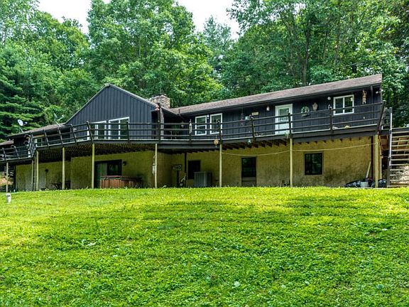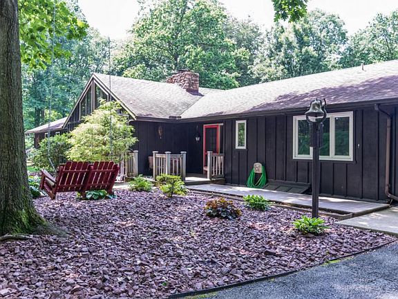 Sprawling rancher on 10.8 acres with custom in-law quarters, riding ring & one stall barn. Wooded with stream, wrap around deck, 2 fireplaces, custom baths & kitchen. Clean & Green.