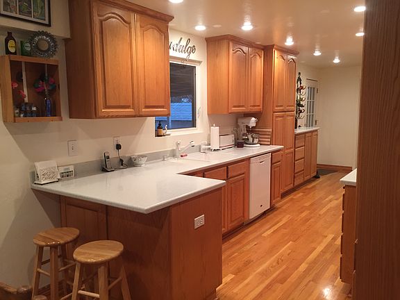 This well cared for 4 bedroom, 2.5 bath home has been completely updated. Key features are: Kitchen remodeled in 2007. 2014 dishwasher and double wall ovens. Fridge negotiable. Jenn air gas sealed glass cook top, Instant Hot, dove tailed drawers, custom oak cabinets (tons of pull-outs and great organization!), lighted built in hutch, solid surface countertops with seamless sinks, solid oak hardwood flooring. Remodeled master bath with double shower, custom cabinets, solid surface countertops and double sinks. Large master bedroom. Brand new main bath, with custom cabinets, tile flooring, and solid surface countertop with seamless sinks. New (2014) roof. New windows, updated insulation, and siding installed in 2007. New gutters. New forced air gas furnace (Dec 2015). Certified wood stove insert in family room fireplace. Second living room standard fireplace. Two outdoor sheds, large garden space, treehouse in backyard, covered patio for entertaining. Double car garage (cabinets stay). Fencing redone. Brand new garage door opening system (Feb 2016). RV parking. Located on a quiet, dead end street, and is a short walking distance to a good preschool and Shasta Elementary. 2% commission to selling agent.