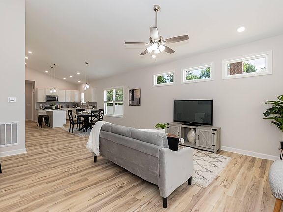 New construction one level living in Burlington! Beautiful LVP flooring throughout home. Open floorplan with tons of natural light and vaulted ceiling. Eat in kitchen with island, tile backsplash and SS appliances. Fridge is included! Primary bedroom provides a WIC and en-suite. Large laundry room. Covered front porch. New gravel driveway. No HOA! Preferred lender incentives available! Contact LA for more info. **Photos are representative and selections on-site can vary**