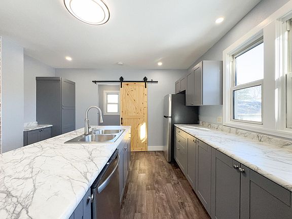 The fully updated kitchen comes complete with included appliances, a convenient coffee bar, and ample counter space, perfect for cooking and entertaining. The main floor offers a primary bedroom with its private full bath, a laundry area, and a half bath for added convenience. Upstairs, you'll find two additional bedrooms and another full bath.