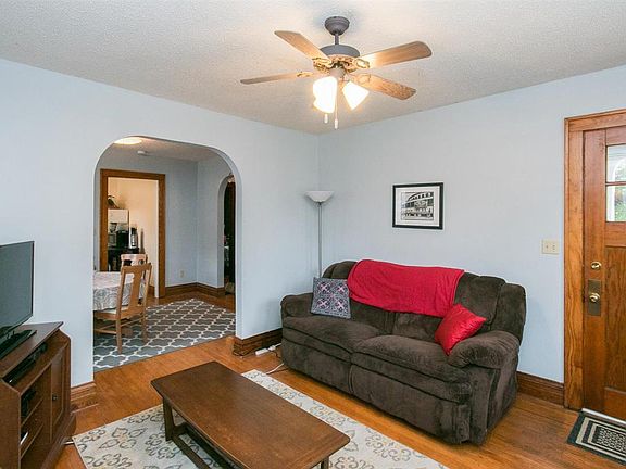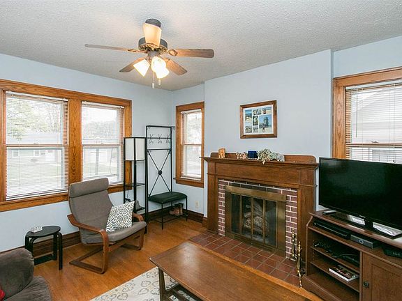Cute, clean & charming! Cozy bungalow in an established historic neighborhood with many mature trees & so much to offer! Special features include hardwood flooring; arched openings; brick wood burning fireplace; large dining room; full basement with a rec area, lots of great storage & the washer/dryer stay; deck; 1 car detached garage plus a carport; fenced in yard; & more! Bedroom curtains are reserved.