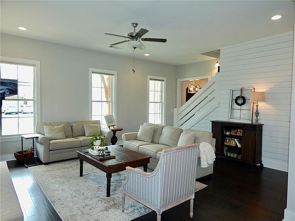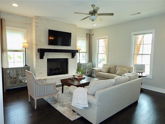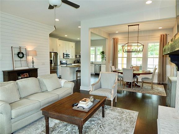 It's the one you've been waiting for! This beautiful brick farmhouse style home on a cul-de-sac is better than new! The front porch welcomes you, & the gorgeous foyer invites you in. Sliding barn doors reveal a main floor Guest Rm w/an En Suite Bath. The Great Rm boasts a brick hearth fireplace w/gas logs, shiplap accent wall, and it's open to the Dining Room & Kitchen, all with handsome hardwood floors! The Kitchen is a chef's delight w/a huge island, stainless steel appliances, granite countertops & subway tile backsplash. Check out the covered back porch which overlooks a nice Backyard. The main floor Master Suite has 2 spacious walk-in closets, dual vanity w/granite, a large subway tiled shower with bench & niche, garden tub, linen closet & separate toilet rm. Upstairs has 3 more bedrms--2 have a shared bath & the other is like a 2nd Master w/En Suite Bath & walk-in closet. The lucky new owners can move into this amazing home by 9/15/2021. Call today before this rare gem gets away!