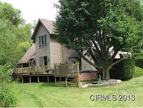 #12210-What a spectacular property-over 6 acres with 2 ponds and a charming 4 bedroom home with a wrap around deck to enjoy those relaxing days of Fall. Large living room with fireplace plus family area has 2nd fireplace. Kitchen features patio doors leading to deck and view of smaller pond. Lower level features basement area with patio doors and 24x22 garage area. Upper level features 2 bedrooms, full bath and loft area. New heat pump with air cleaner & humidifier and central air in 2013.