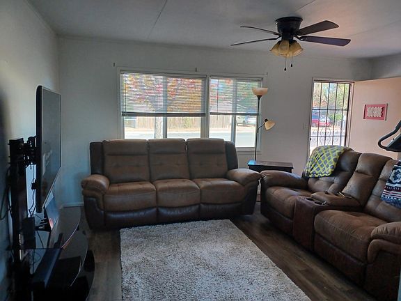 This attractive 2 bedroom/1 bathroom in Southgate is located just a few minutes from I-25, Tinseltown, Broadmooor, Fort Carson and the rest of our city's southwest attractions and employers. It has a beautifully finished, generously-sized, private fenced backyard, a detached, over-sized 1 1/2 car garage with built-in workbench that's ideal for the home mechanic. It's also in an extremely desirable school district. The home features 2 good-sized bedrooms, lots of windows for all-day sun, updated family room and kitchen with washer/dryer hookups so no trips to the laundry mat. New flooring has been installed throughout along with fresh paint and new lighting fixtures. In addition to the garage there's a driveway for ample off-street parking. Also a new furnace and the house has been stucco'd so its very energy efficient and cheap to heat. The house is cleaned and ready for immediate move-in. This is strictly a no-smoking property. Pets are possible on a case-by-case basis. Owners require first month's rent (prorated if necessary), final month's rent + one month's rent as security deposit.