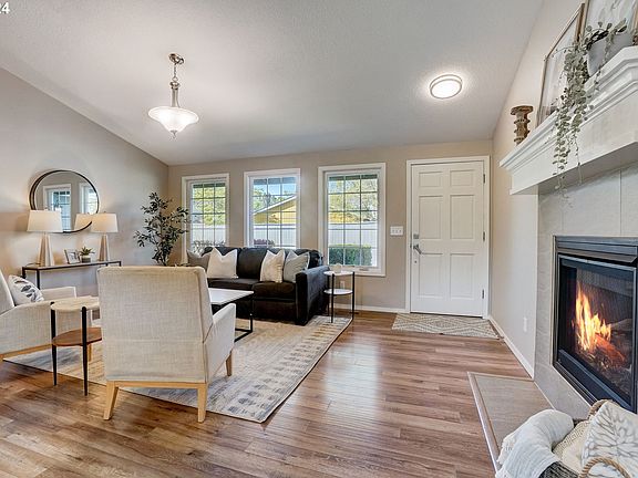 This spacious 4 bedroom, 2 bath home boasts modern upgrades throughout. Remodeled with new windows, furnace, A/C, and a cozy gas fireplace for chilly nights. Enjoy a pristine finished garage with epoxy flooring and a convenient shed for extra storage. The large landscaped yard offers tranquility in a quiet cul-de-sac setting. Bonus: Separate tax lot/tract for RV parking, adding an ADU, or potentially building a separate home to keep or sell as an investment (buyer to perform due diligence). Updated light fixtures and brand-new appliances add to the appeal. With a potential office space in the fourth bedroom, this home caters to your every need. Don't miss out on this gem! [Home Energy Score = 5. HES Report at https://rpt.greenbuildingregistry.com/hes/OR10225847]