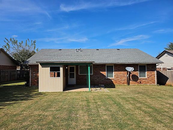 This beautiful house is near to Veteran Memorial Park in Moore OK. It conveniently locates in the center of fast-growing City of Moore, Great Moore School district, and it has just few minutes driving to Tinker AFB, OU, Amazon Warehouse/distribution centers, Interstate Highway I-35, I-240 as well as busy retail shopping and entertainment centers. Home is built with nice wood flooring in all Bedrooms and Livingroom area. The house is well kept and maintained. It has an underground storm shelter in garage area, nice landscaping, a bonus room in back patio and 2 large storage sheds that serve the new owner with plenty of storage need. The Buyer and/or Buyer's Realtor to verify the school and square footage information for accuracy.
