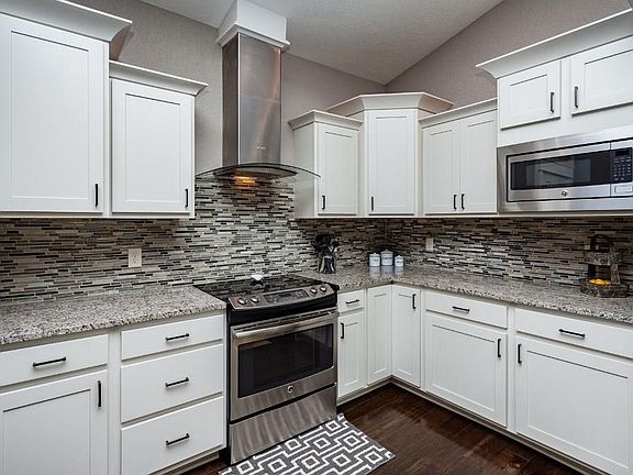 Ranch 5 bed/3 bath home with great layout and finishes. Kitchen boasts upgraded stainless steel appliances, hood vent, stylish backsplash, and pantry. Open great room area with gas fireplace and hardwood throughout. Master suite includes tray ceiling and private bath with dual vanity, tile shower with dual shower heads and walk in closet. Finished lower level has spacious family room, bar, 2 bedrooms and bath. Other features: passive radon system, built-in storage stays, mudroom with cubbies, 4 years left of full tax abatement, large patio, maintenance free vinyl siding and stone! Home close to aqua park and two parks. Call for more details!