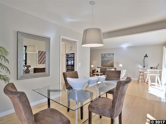 This mid century modern home is located in Crow Canyon Estates and sits on 1/4 acre corner lot with mature landscaping. The light and bright open floor plan is highlighted with updated kitchen and baths, gorgeous bamboo flooring throughout, fresh paint, and recessed lighting. Sliding doors from the living room, dining room, family room and master suite access the expansive yard - which is ideal for relaxing, entertaining, outdoor dining, gardening and play. This delightful home is close to the Iron Horse Trail, Crow Canyon Country Club and enjoys top Danville schools including Greenbrook Elementary, Charlotte Wood Middle and San Ramon Valley High School.