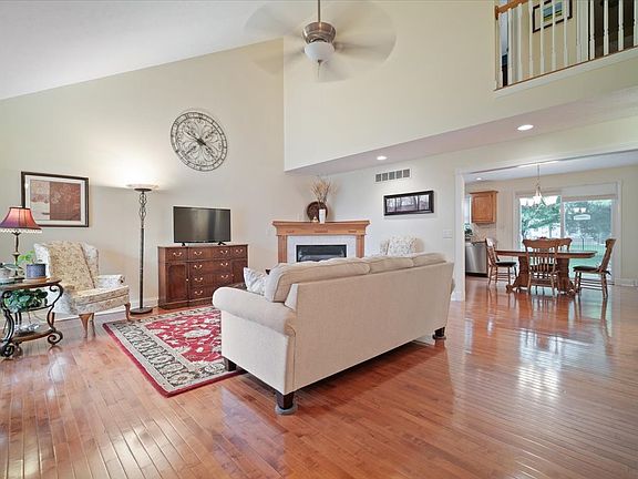 Beautiful, bright open floorplan with main floor primary bedroom and main floor laundry room too. Super well maintained and very freshly updated. Two large bedrooms on the second floor with another full bathroom. Peaceful quiet location with beautiful views out of all the windows. Hardwood floors on the main floor. Great Room has a gas fireplace. Kitchen has gorgeous sparkly Quartz countertops. Lovely patio off kitchen too that leads to an amazing and huge backyard. Largest lot on the street! Super finished lower level too with a rec room as well as an office or craft area with built in shelves. Egress window in the storage room too for a future 4th bedroom. Fresh paint with neutral and calming color pallet. This home has been meticulously maintained and is in ready to move in condition. WOW!
