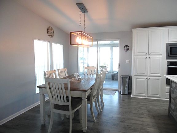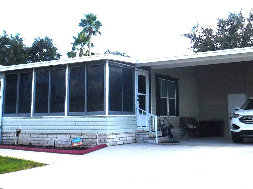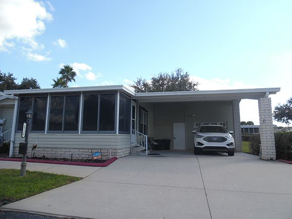 Beautiful two bedroom, two bath home with den or third bedroom, being sold partially furnished. Home was remodeled in 2020. Large open concept to kitchen, living room and dining room with trey ceiling in living room. Island kitchen with plenty of cabinets, new countertops and nice appliances. Separate laundry room with new washer and dryer in 2025. Spacious rooms throughout. Flooring replaced in 2019. AC 2012. Roof 2017. HWH 2023. Front lanai with new windows, portable AC and flooring. Double car driveway, carpet and extra large shed. No rear neighbors. Come take a look at this gorgeous house and make this your new home today!
