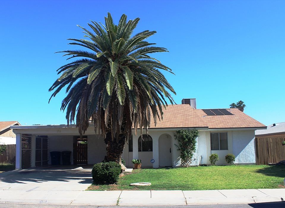 A very clean hidden gem in Tierra Kino. Newer carpet and kitchen recently remodeled. Brand new carpet area on covered patio with a blank canvas for a back yard that offers tons of possibilities for your buyer! Don't miss out on this perfect starter home close to shopping, gym, and hospital.