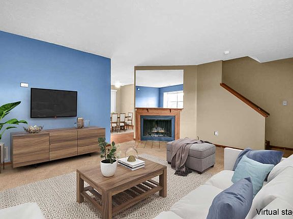 Unique OPPORTUNITY! Spacious condo located in Worthington Schools, Columbus taxes. This 2 BD, 2.5 bath 1208 sq ft condo greets you with a oversized window w/ ledge, and wood burning fireplace. The kitchen and dining area have newer laminate wood floors, breakfast counter, and sliding glass doors that lead to the patio. Attached garage has a separate area for tons of storage or mud room. Each bedroom has a private full bath, Owner's suite has attached laundry closet. Convenient location. Low condo fees. *2 VIRTUAL STAGING Pictures included* NON CONFORMING CONDOS-CONVENTIONAL OR CASH BUYERS ONLY.