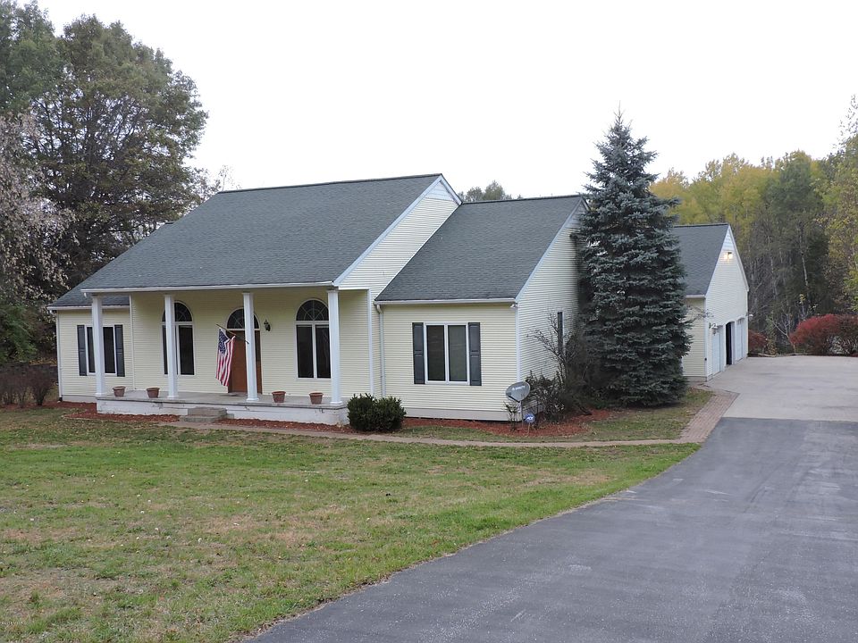 Beautiful, spacious and up to date 3+ bedroom colonial home just outside Big Rapids. 3 large bedrooms and a 4th room that could be used as a den or 4th main floor bedroom if needed. Large formal dining room with open concept to kitchen and living room. 14' ceilings, new luxury vinyl tile flooring throughout, walk-in pantry, built-in appliances, tile back splash in kitchen, gas log fireplace in living room, separate main floor laundry room, large windows with views of your own personal oasis with a large composite deck that wraps around a heated pool. Extras include: ADT security system, central vac., oversized heated 3 stall garage, storage shed, finished lower level with ample storage for any family. Don't miss out on this up to date home with a great location!!