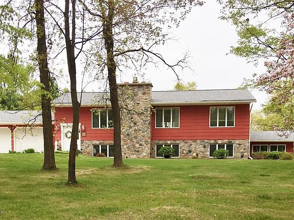 Pride of Ownership is very evident in this outstanding property. This beautiful 4BD, 3BA home is set on 12 private acres. It features an remodeled open floor plan, new flooring, new kitchen appliances, large entry area, spacious kitchen w/eat in plus a formal dining room, attractive living room, 2 bedrooms, a full bath and main floor laundry. There are patio doors off the kitchen to an new 18 x 18 deck, new roof, and new central air. The lower level has a Master Suite, cozy family room with fireplace, office/den, plenty of storage and mud room. Yard has been well cared for and nicely landscaped. Excellent outbuildings featuring a Family Rec Room, machine shed, garden shed and extra storage, and chicken coop. 7 acres of fenced pasture are an added bonus. This is a must see property.