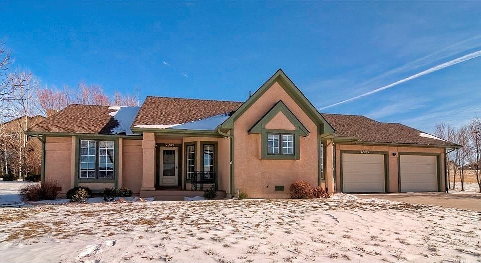 Stucco exterior, unobstructed spectacular Pikes Peak and front range views, stacked stone heatilator gas fireplace in family room that is vented to master and kitchen, floor to ceiling windows that the let outdoors in, hardwood floors in entry, kitchen and hallways, efficient hot water baseboard heat, covered front and back patios, huge oversized garage w/great storage plus attic storage,new 50 yr roof, gorgeous landscaping,in excellent condition and move in ready!