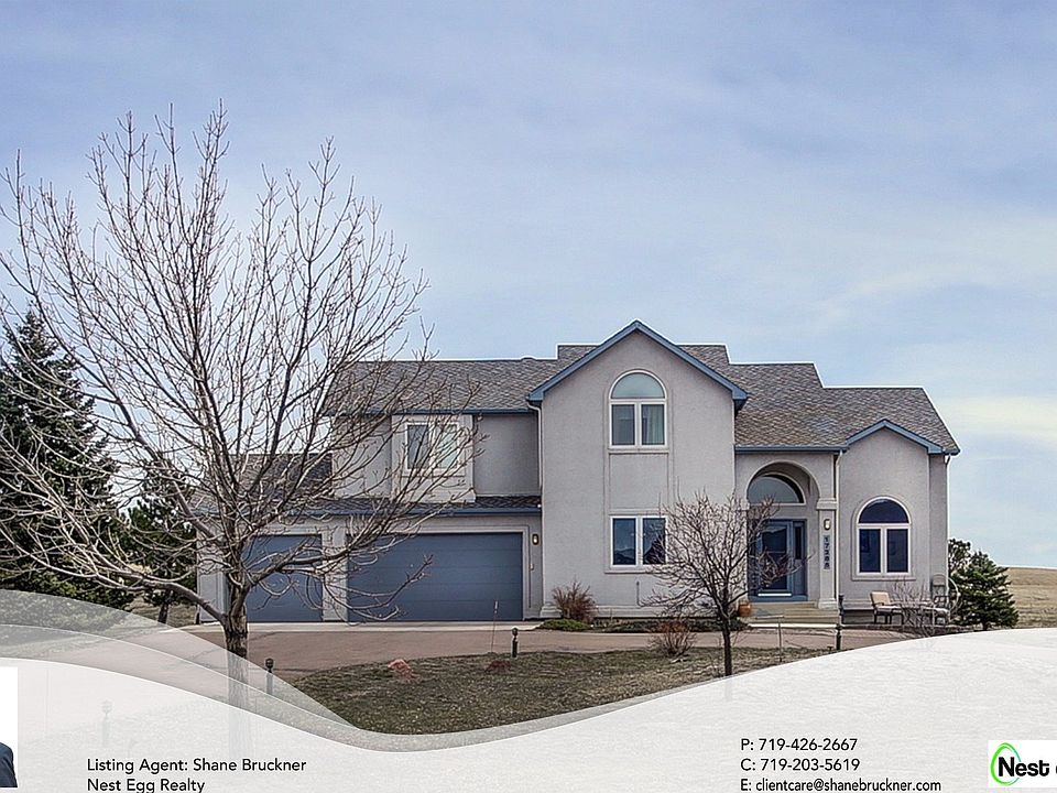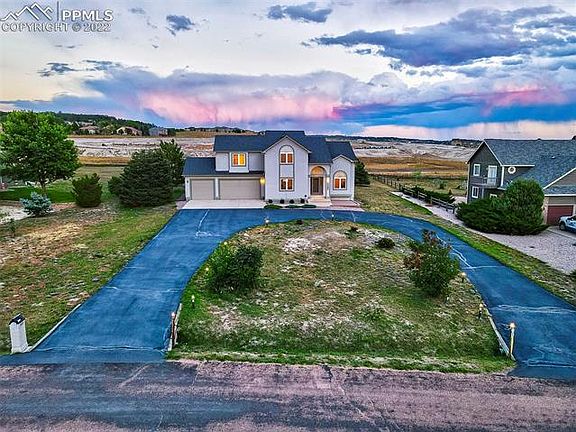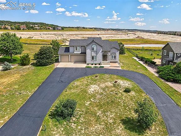 Open and bright custom 2-story on a large .67-acre lot in the fast-growing area of Monument. The main level features a front private office with French doors and vaulted ceiling, formal dining with pretty inlaid wood flooring, and an impressive great room with soaring ceiling, walls of windows, a fireplace, and built-in shelving. The kitchen has granite counters, an island with bar seating, stainless steel appliances, gas downdraft range, new refrigerator, large pantry, and sunny breakfast nook. Walk out to the expansive back deck with sheltered grilling area and mountain views. On the upper level is the spacious master retreat with double doors, vaulted ceiling, and adjoining 5pc bath with soaking tub and walk-in closet. Two more upper bedrooms share a full bath with granite counters and vessel sink. The finished basement offers plenty of entertaining space with a family room with fireplace and wet bar area. There is another bedroom and full bathroom, and a bonus room for extra storage, workout space, or home theater. Other amenities of this beautiful home include central vac, central air, main level laundry with new washer & dryer, tankless water heater, 3-car oversized garage with garden door, and 2018 roof. Just minutes to shopping, dining, recreation, and I-25 access.