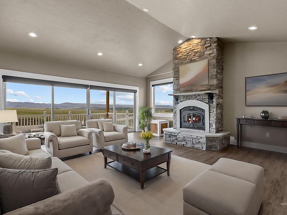 Immerse yourself in a breathtaking setting surrounded by the scenic Snake River Valley and its celebrated wine region. This home offers a unique living experience featuring seamless indoor-outdoor entertaining with an open deck that spans the length of the house! This home features ICF construction with superior insulation & energy efficiency. The interior includes a flexible lower level with a massive shop including its own 200amp panel. The lower level also includes an office that doubles as a guest room, a spacious family room w/ a wood-burning fireplace, and another covered patio with scenic views. Upstairs, the open floor plan shines with a gourmet kitchen, featuring dual ovens and a gas stove, & a living room with a 12-foot vaulted ceiling. Pet-friendly bathroom system & heated drive-way(rough-in). 36' RV Bay w/ 50amp, Sewer & Water. This home is catering to those interested in the functional & efficiency benefits while admiring the lovely location! Ask Agent For Features List! AS-IS, PRICED TO SELL!