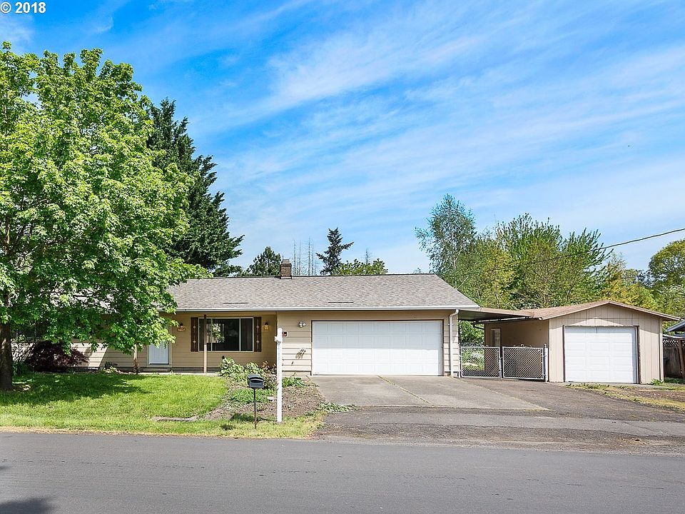 Single-level ranch on huge lot. Living rm w cozy fireplace. Formal dining w built-ins. Kitchen w eating area & slider to backyard. Utility rm w storage & w/d. Lg .29 acre w fenced backyard, covered patio, mature trees-Maple, Oak, Cedar. Grapes on arbor, lg garden. Detached garage w RV parking & rm for your toys. Great commuting options, located close to MAX Blue Line, bus line. Quick trip to Nike, Intel, shopping, restaurants.