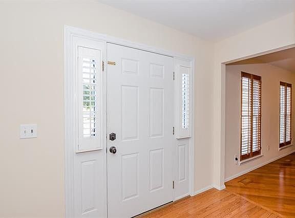 Immaculately maintained 2 story home on large lot backing to trees. Open floor plan and over 2700 square feet of living space, including finished Lower Level. Professional landscaping leads to the inviting entry opening to the formal Dining or Living Room space, with plantation shutters and gleaming hardwood floors. The spacious Kitchen has granite countertops, stainless steel appliances, walk in pantry and adjoining breakfast room offering a large bay with full light glass doors leading to the patio. Bright and airy Family Room with a beautiful bay window overlooking the private backyard! Convenient laundry room and powder room complete the main level. The upper level showcase is gleaming hardwood floors throughout! The vaulted master suite boasts an abundance of natural light, a huge walk-in closet and a master bath with ceramic tile flooring, garden tub and separate shower. The Upper Level has three additional bedrooms and an additional full bath. The finished lower level includes a nicely appointed rec room, a powder room, and still allowing plenty of storage space. Relax outside on the large patio which overlooks a nice size lot backing to trees. Neighborhood has a swimming pool, stocked lake and clubhouse.