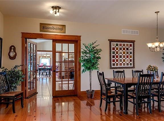 Take a Deep Breath and Escape to this Stunning Country Estate on 16 acres ~ The treelined driveway leads to a beautiful and well-maintained 8 BR, 8 BA home with 3 kitchens, 2 living rooms, including an apartment and large game room located in the lower level. Built with attention to detail this home features quality materials and ease of maintenance. The tranquil setting includes an oversized covered porch, large deck, reflecting pond, orchard, 50x60 barn, open ground suitable for farming or livestock and amazing views of the peaceful countryside. This property is a must see! ***ADDITONAL 105 ACRES AVAILABLE!