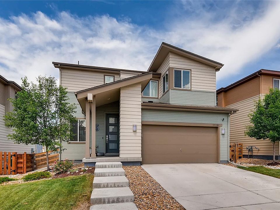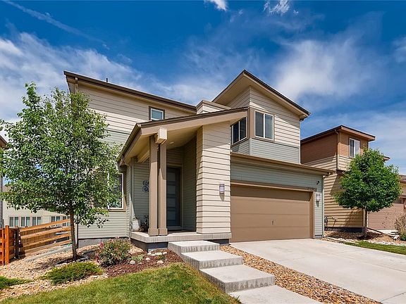 This home is located in the highly desirable popular family friendly Reunion neighborhood & has great curb appeal! The community is surrounded by several parks, hiking trails, a gorgeous lake, the Reunion Coffee House, restaurants & retail shopping. Just a short walk to the elementary school! Awesome Recreation Center which includes full gym, basketball court & outdoor swimming pool. Quick & easy access to E-470, only a 10 minute drive to DIA & a pleasant 25 minute drive to downtown Denver. Brand new carpet & interior paint! Open kitchen boasts stainless steel appliances along w/tile backsplash & the main level floorplan is great for entertaining! Living room is pre-wired for surround sound. Central A/C & NEST Smart HVAC system! Security system has exterior doorbell camera as well as interior camera. Bathrooms have tile floors & tile backsplashes. Finished garage. Large concrete 12x25 patio in the fenced backyard, which is perfect for those summertime BBQ's & family gatherings!